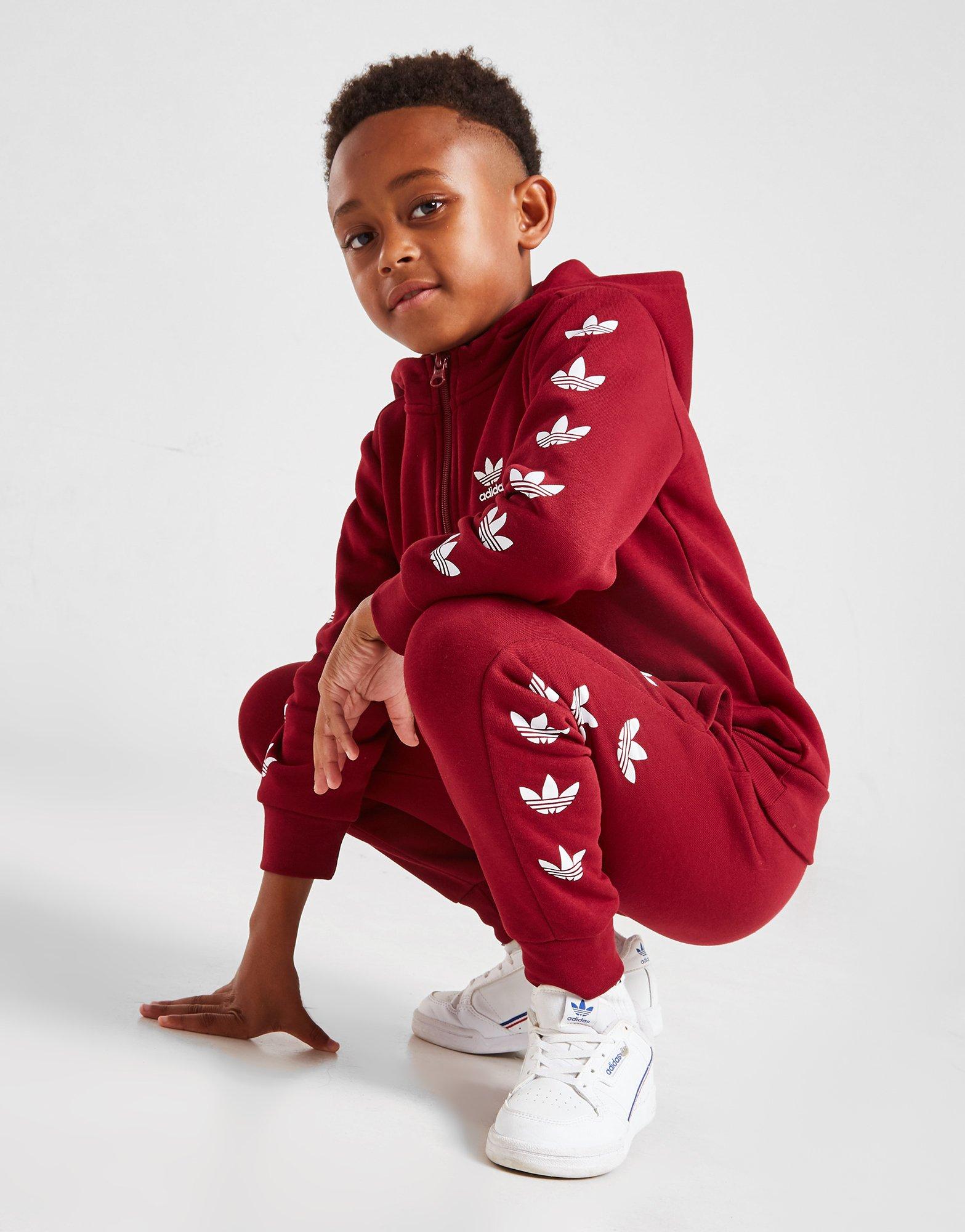 Red Adidas Originals Repeat Trefoil 1 4 Zip Tracksuit Children Jd Sports Global